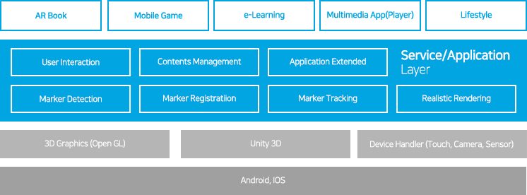 AR/VR 구성요소를 기반으로 Mobile기반 다양한 Service(Entertainment, Game, Education, Etc.) 확장을 위한 Interface 제공